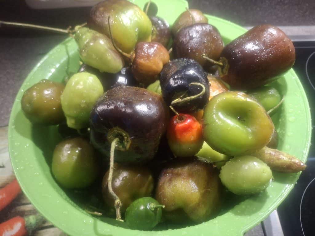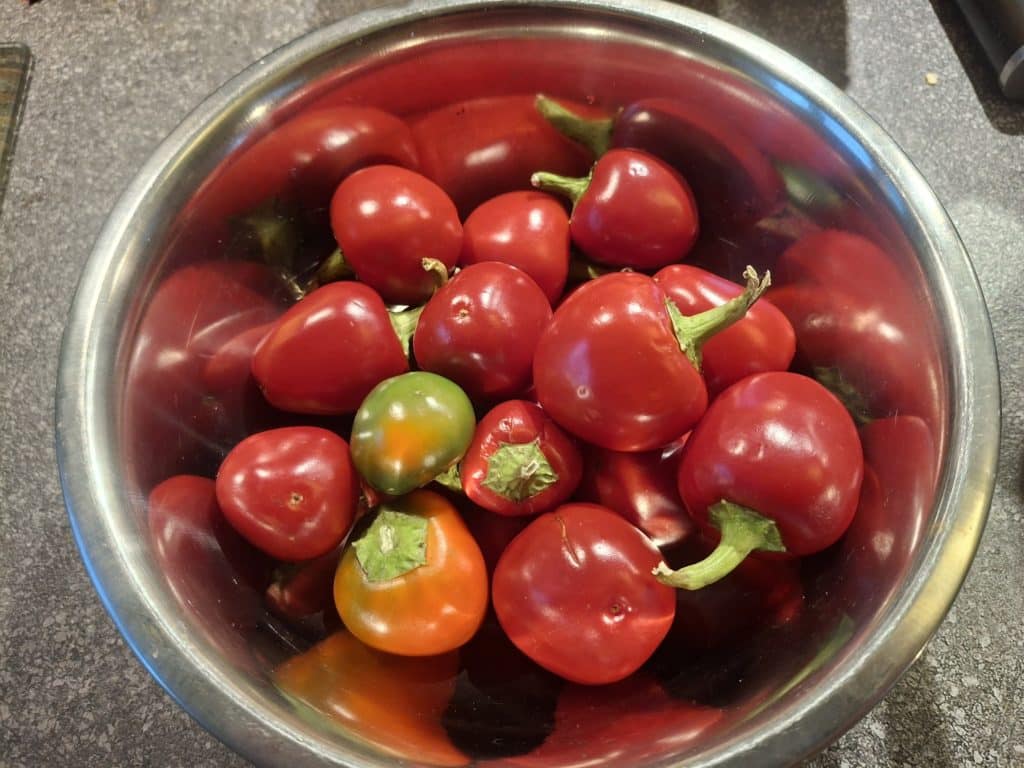Die allerletzten noch grünen Rocotos abgeerntet und daraus GGM-Pulver gemacht.