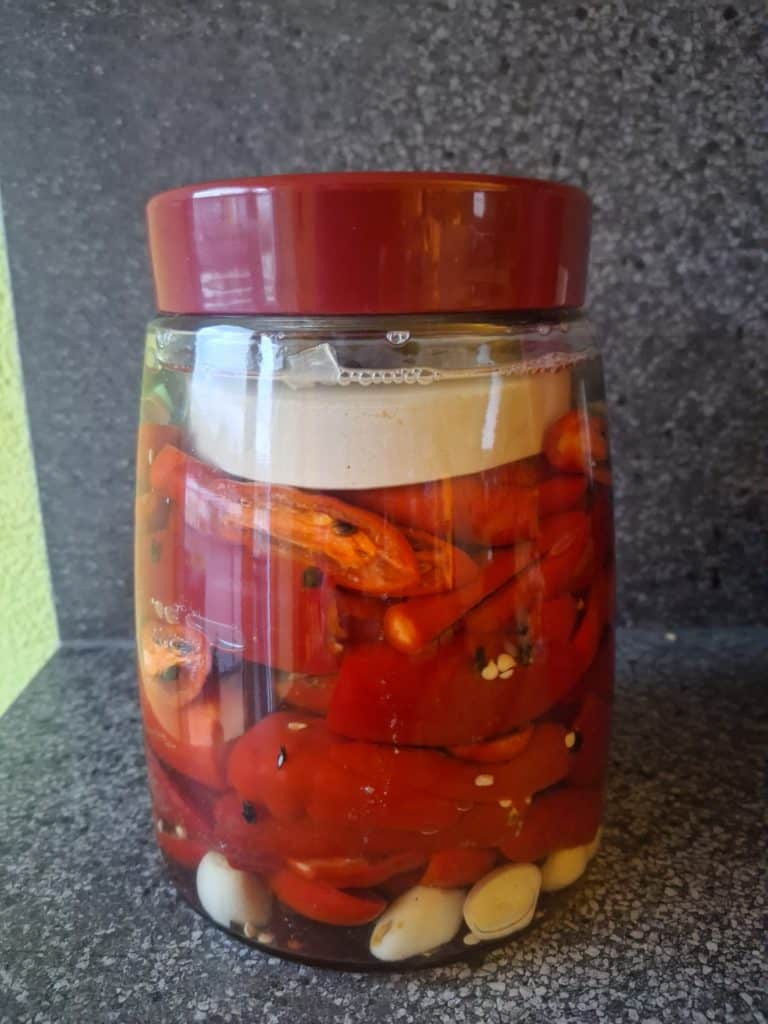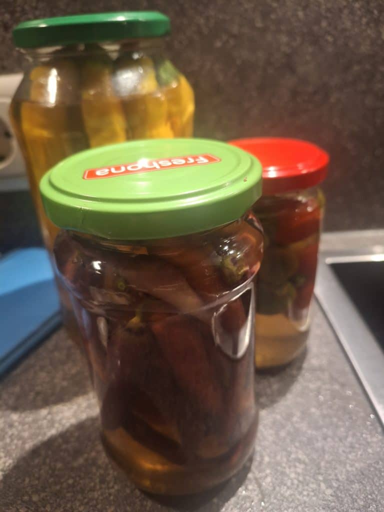Ganze Chilis, süß-sauer eingelegt