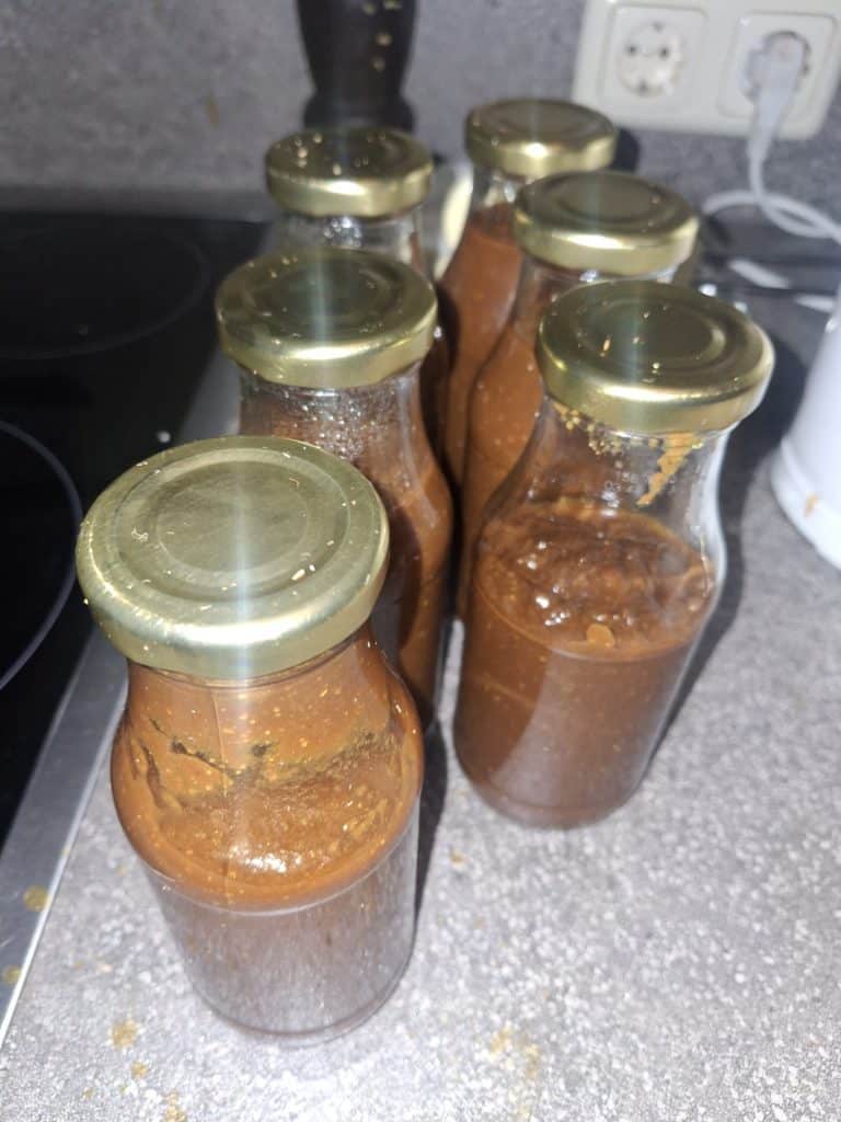 Das Kiwi-Hotsauceferment zur Sauce verarbeitet