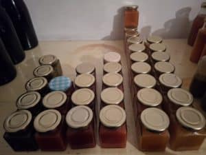 Insgesamt 33 Gläser je 100mL gemacht. Sieht für mich so dekorativer aus. Den Jam hab ich jeweils aus 6 verschiedenen Rocotosorten gemacht. Von links nach rechts: