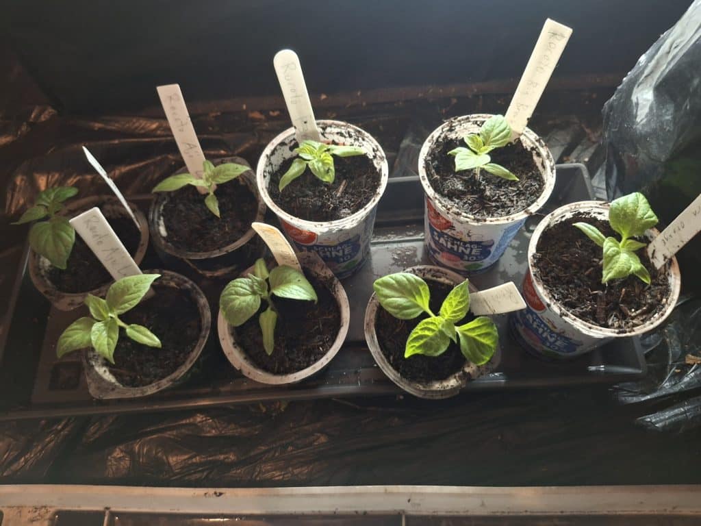8 Keimlinge umgesetzt. 2x Rocoto P360, 2x Rocoto Big Brown, 1 Rocoto Puno Pica orange, 2x Rocoto Aji Largo und 1 Rocoto Olive Mini.