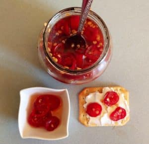 Ganze Chilis, süß-sauer eingelegt