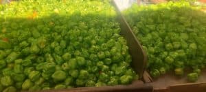 Hier in einem dortigen Supermarkt ganze Berge voller grüner Habaneros.